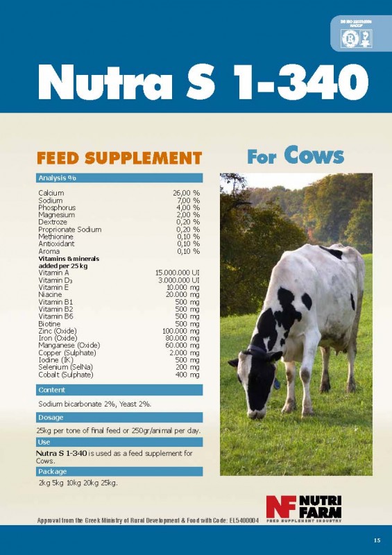 Nutra S 1-340 is a feed supplement used for Cows.