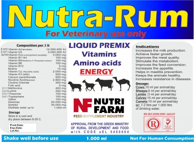 Cows: 10 ml per animal/day