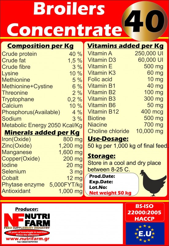 Broilers Concentrate 40 is a special product for Broilers produced