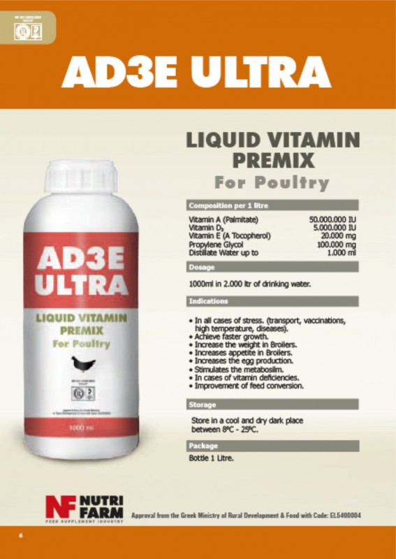 Poultry: 1000 ml in 1000 litre of drinking water.Usage