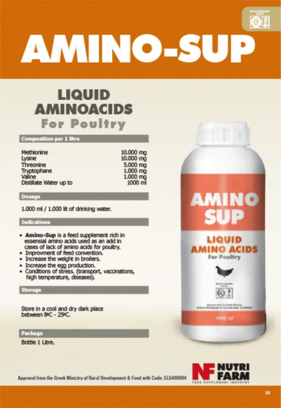 Amino-Sup is a liquid feed supplement rich in amino acids.