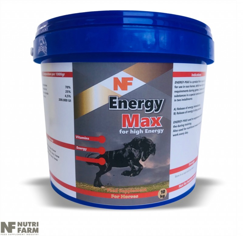 Energy-Max is a product that is specially produced for use in race horses, which have high energy requirements during games. Contains digestible substances in a special combination attach energy in two installments: