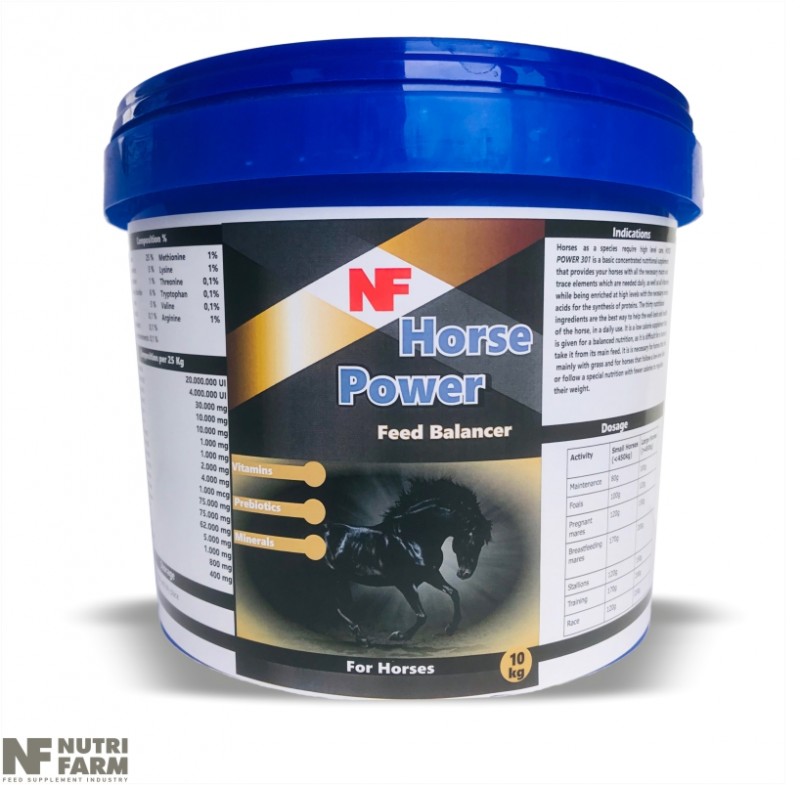 Horses as a species require high level care. Horse Power 301 is a basic concentrated nutritional supplement that provides your horses with all the necessary macro and trace elements which are needed daily, as well as all vitamins while being enriched at high levels with the necessary amino acids for the synthesis of proteins. The thirty nutritional ingredients are the best way to help the well-bein and health of the horse, in a daily use. It is a low calorie supplement that is given for a balanced nutrition, as it is difficult for a horse to take it from its main feed. It is is necessary for horses that fed mainly with grass and for horses that follow a low-level diet or follow a special nutrition with fewer calories to regulate their weight.