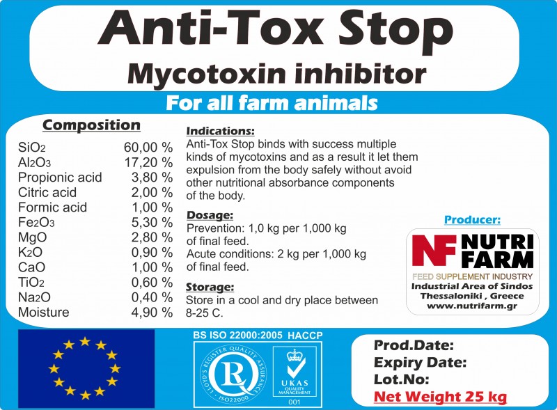 Anti-TOX-Stop binds with success multiple kinds of mycotoxins and as a result it let them expulsion from the body safely without avoid other nutritional absorbance components of the body.