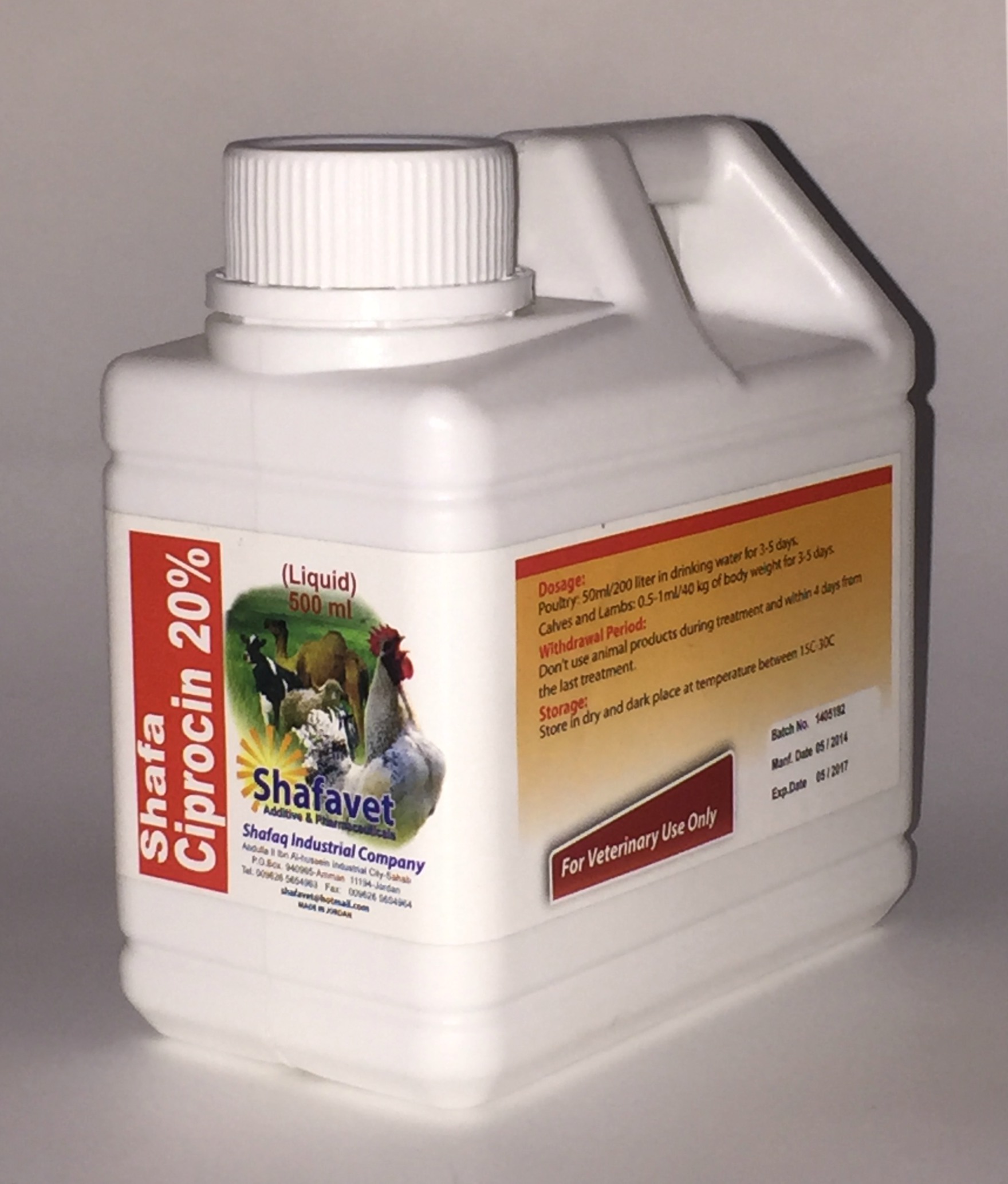 CIPROCIN – 20% contains antibiotic ciprofloxacin , which is highly effective for treatment of mycoplasma , Respiratory , GI and Urinary tract infections caused by gram-negative and positive bacteria such as: E.coli , Salmonella , Staphylococcus and Streptococcus.
