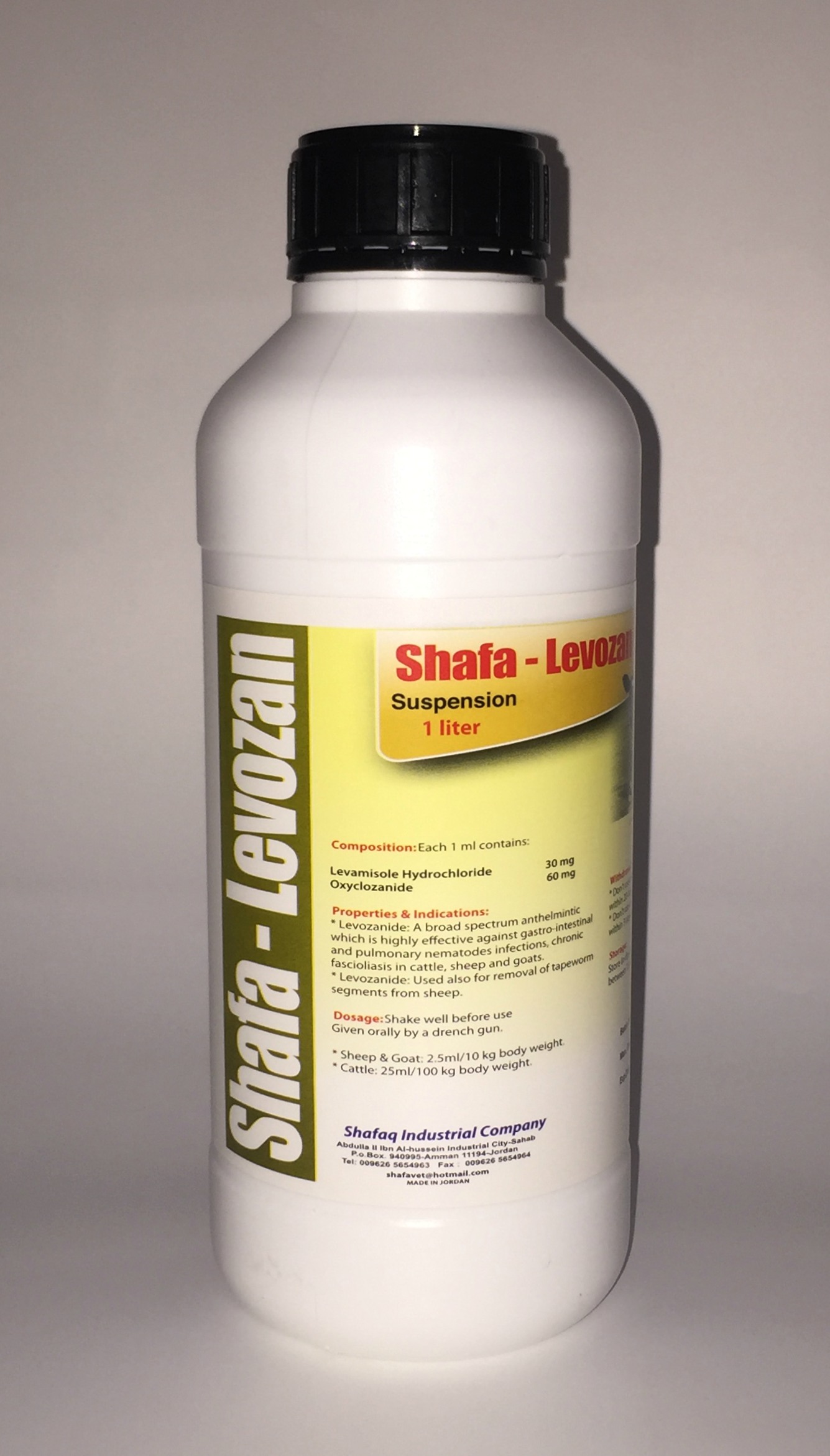 SHAFA – LEVOZAN A broad spectrum anthelmintic which is highly effective against gastro-intestinal and pulmonary nematodes infections, chronic fascioliasis in cattle, sheep and goats.