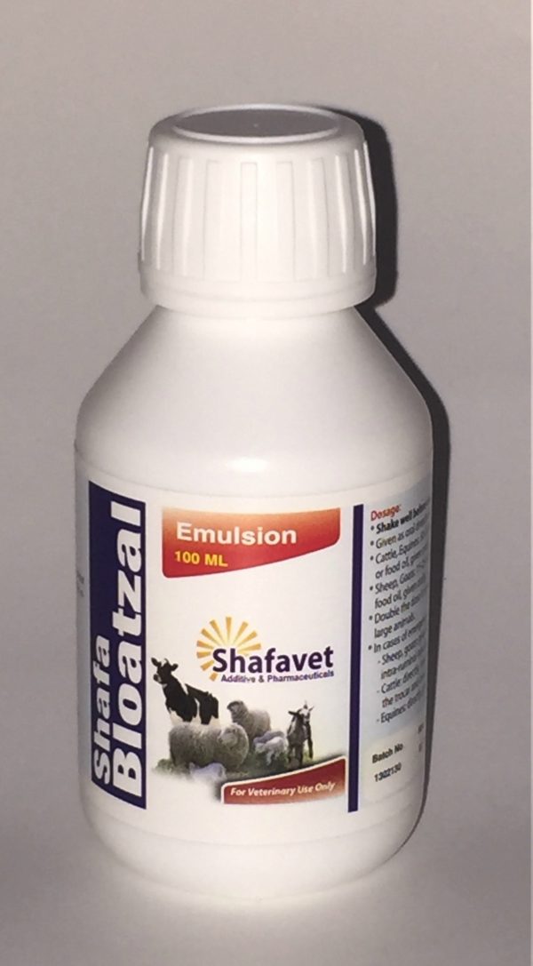 For the treatment of frothy bloat in cattle, sheep, goats and spasmodic colic in equines.