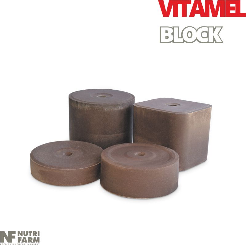 VITAMEL block is a full feed supplement rich in minerals, vitamins and molasses. Combined with molasses beneficial properties, this block gives energy boost to milk productive animals. It also provides all the components that lack from the animal's diet, offering a significant reinforcement to their immune system. Furthermore, it helps to milk production augmentation, to the maintanance of healthy digestion, lowers fatigue levels and offers to the vitality and richness of goat's and sheep's hair.